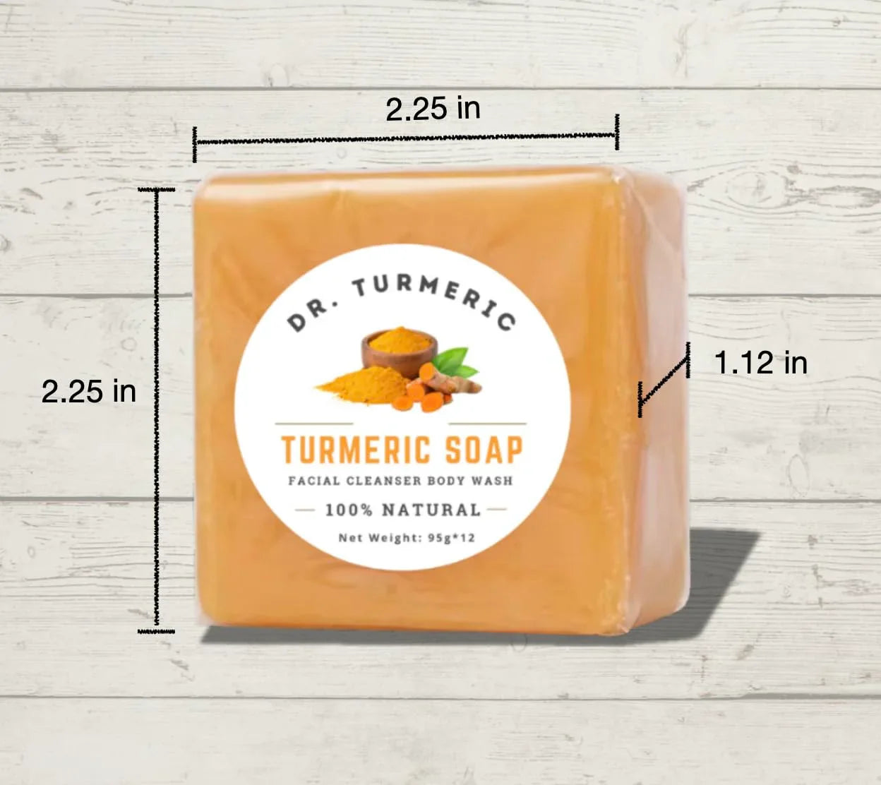 Dr. Turmeric Soap Bar is a face and body cleanser that harnesses the power of turmeric to deeply cleanse and even skin tone. Infused with Vitamin C, Aloe, and Glycerin, this soap moisturizes while providing a refreshing scent for radiant skin. This 3-count pack of soap bars will invigorate your daily cleansing routine.