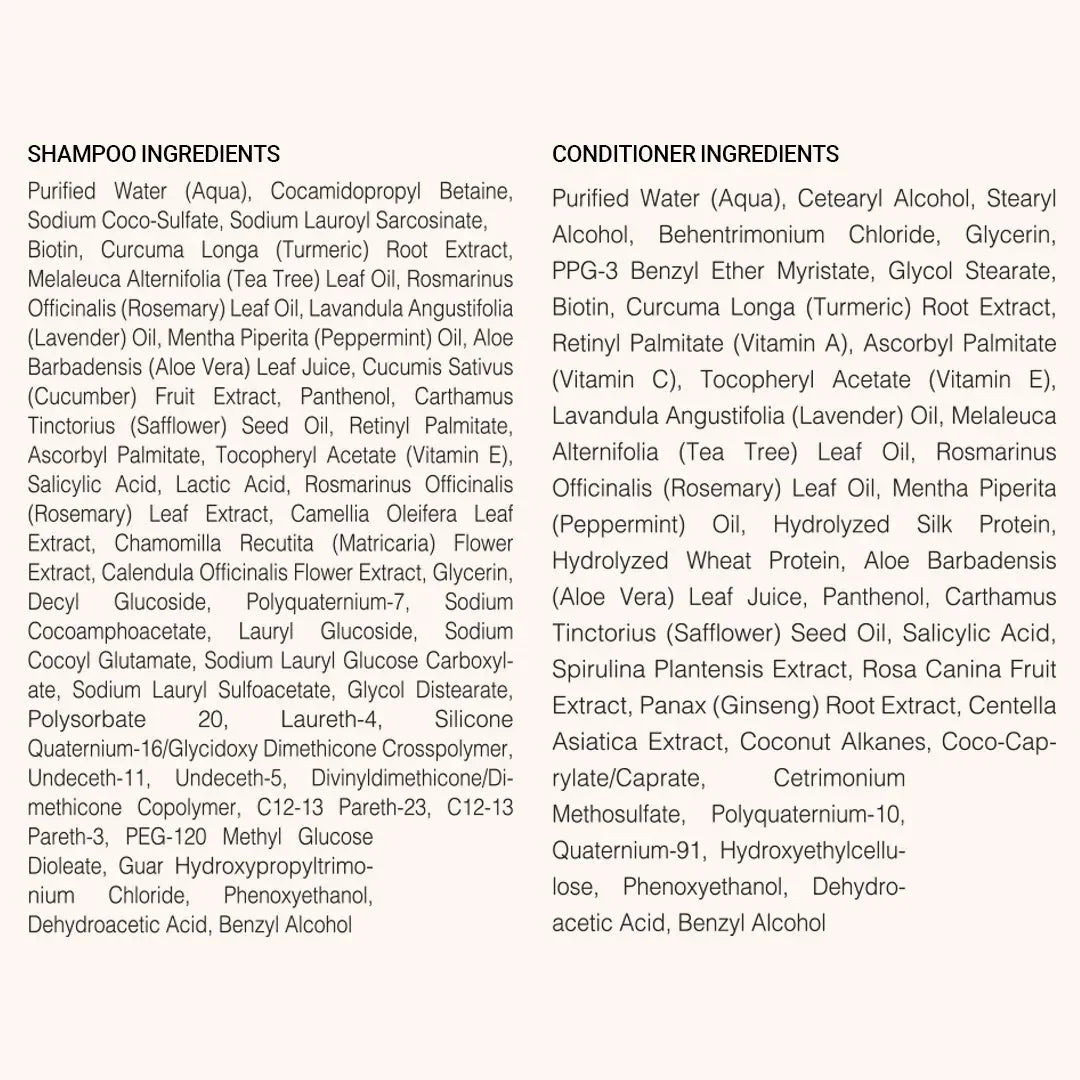 - Turmeric and Tea Tree Oil purify the hair and scalp to remove impurities and support a healthy environment for growth.