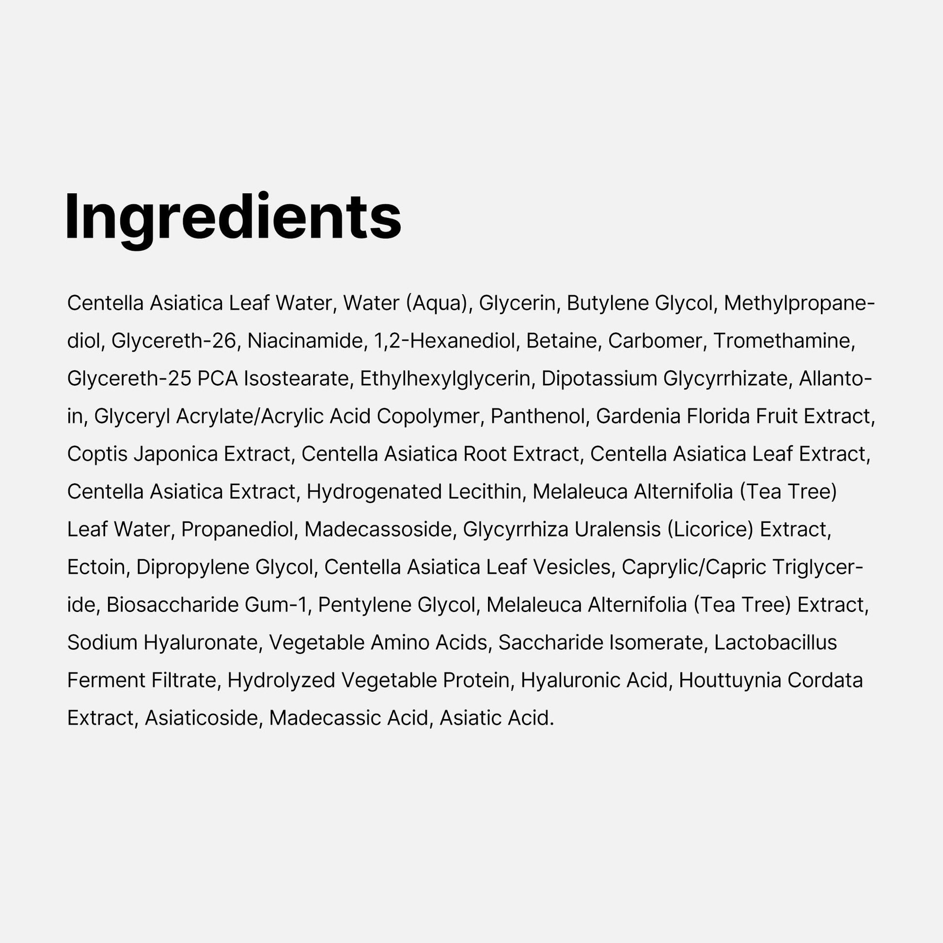 - Soothes irritated skin with Centella Asiatica