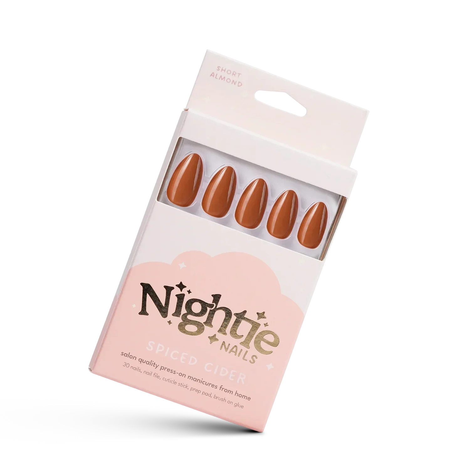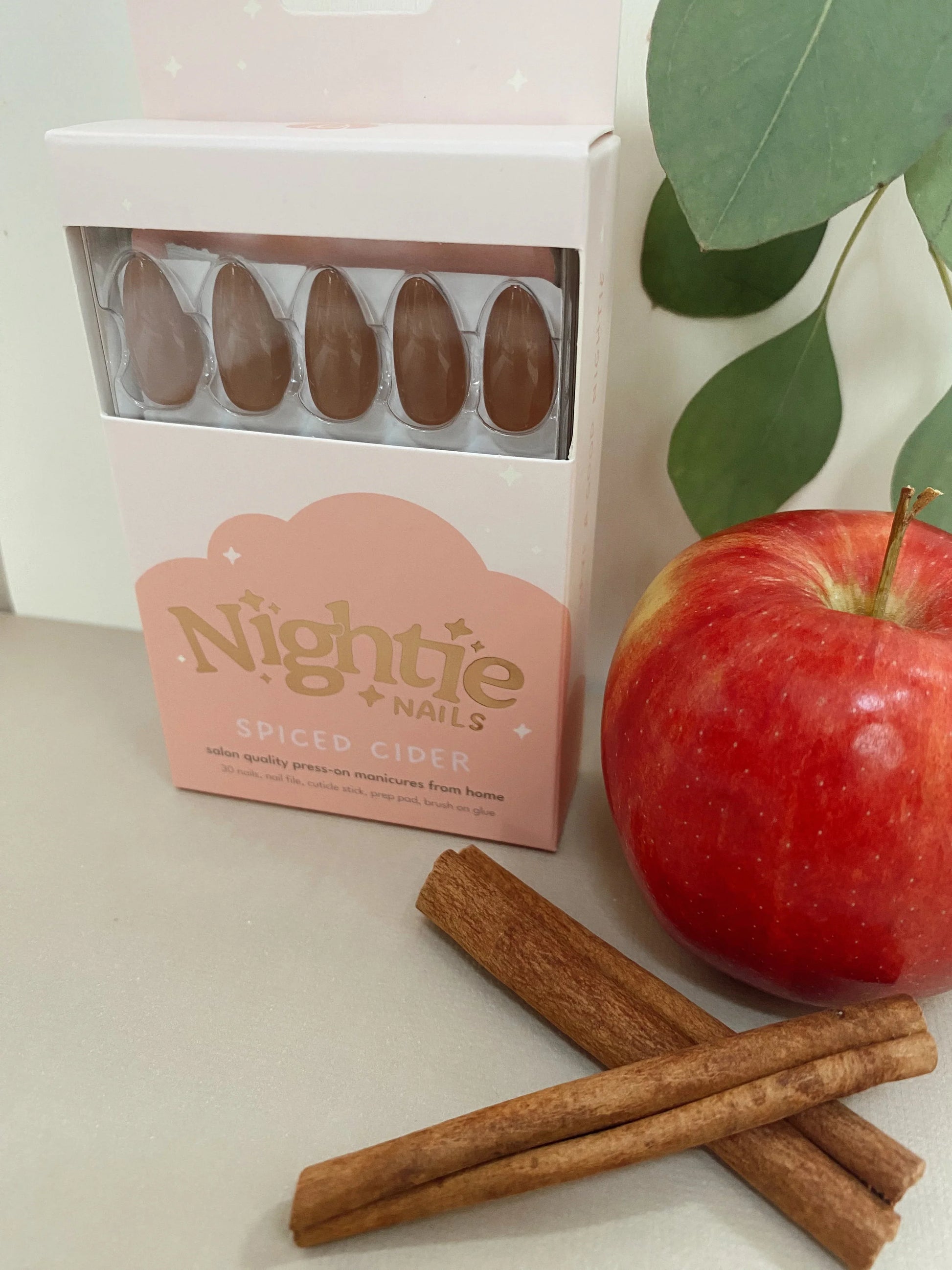 Nightie Nails Spiced Cider press-ons offer a simple way to embrace fall vibes with a beautiful, hassle-free manicure.